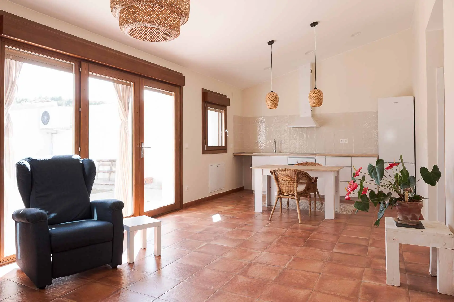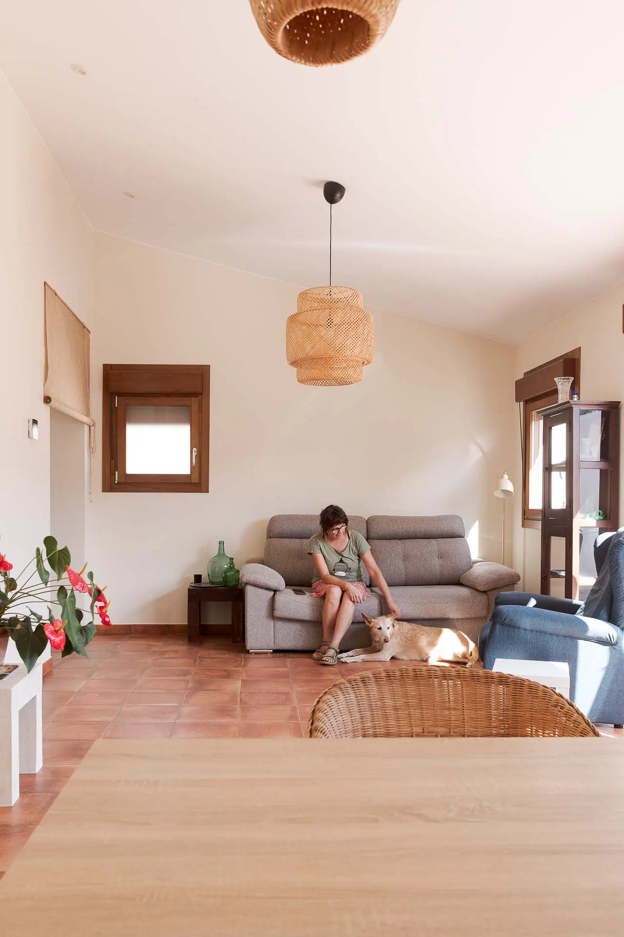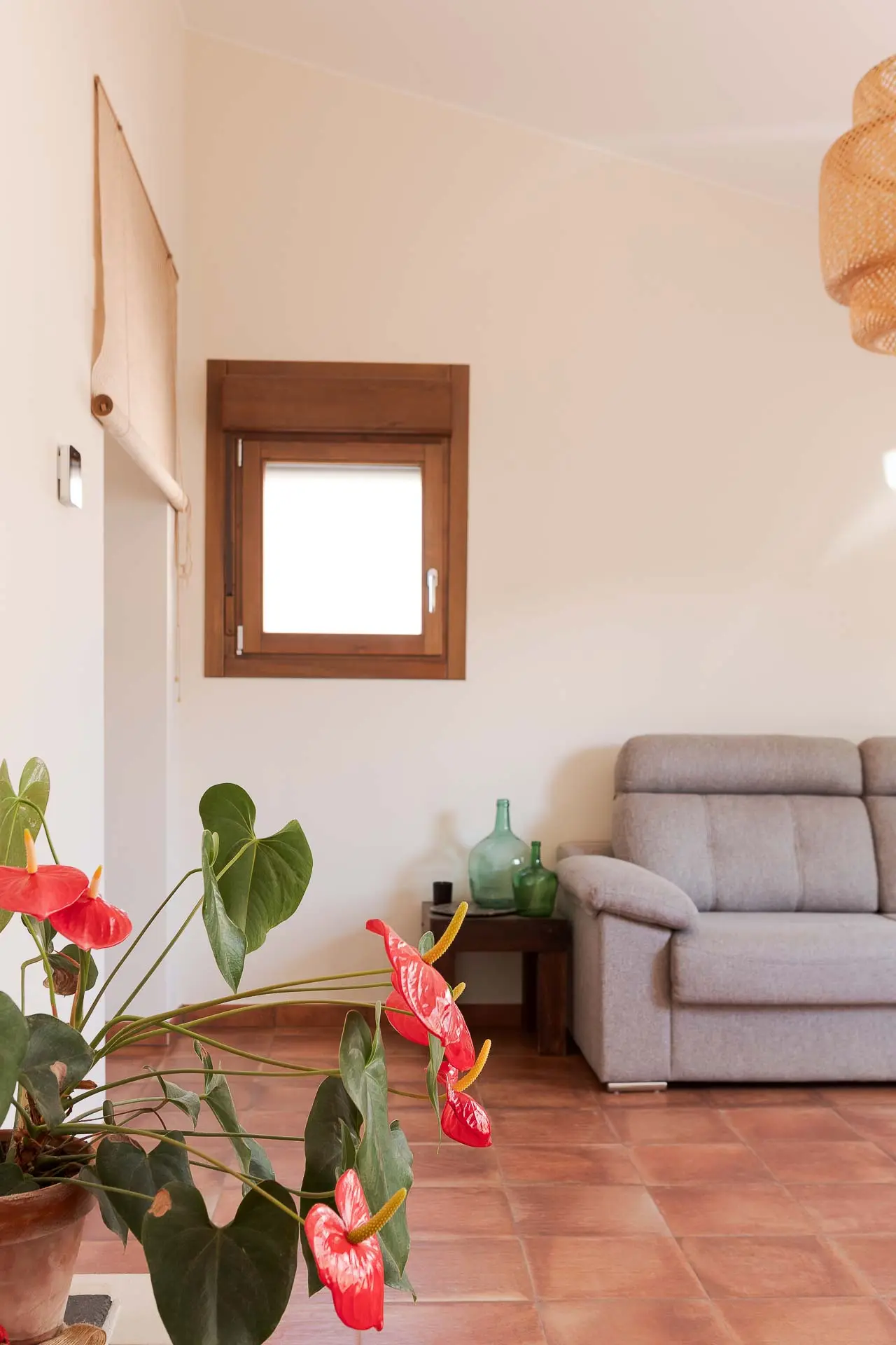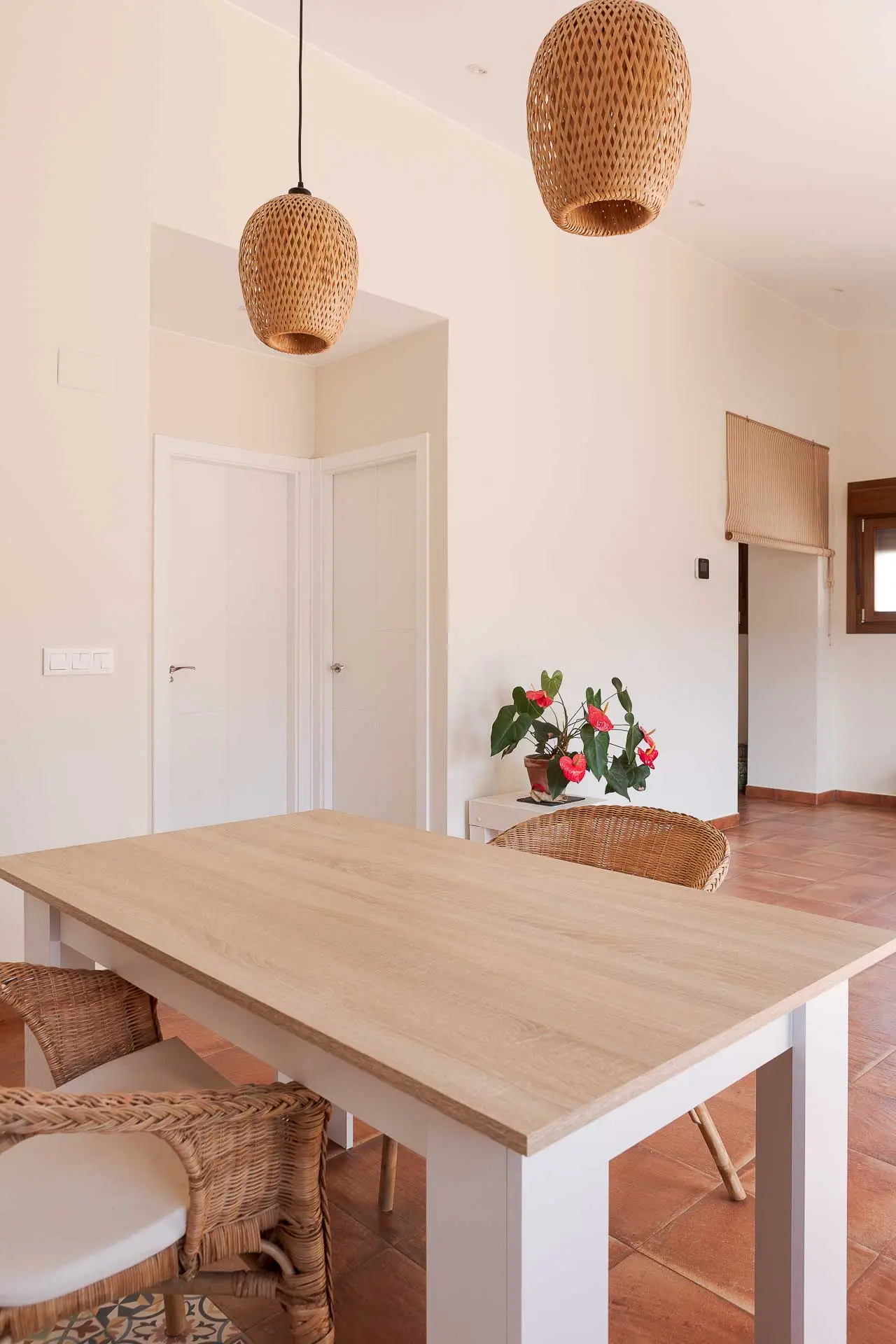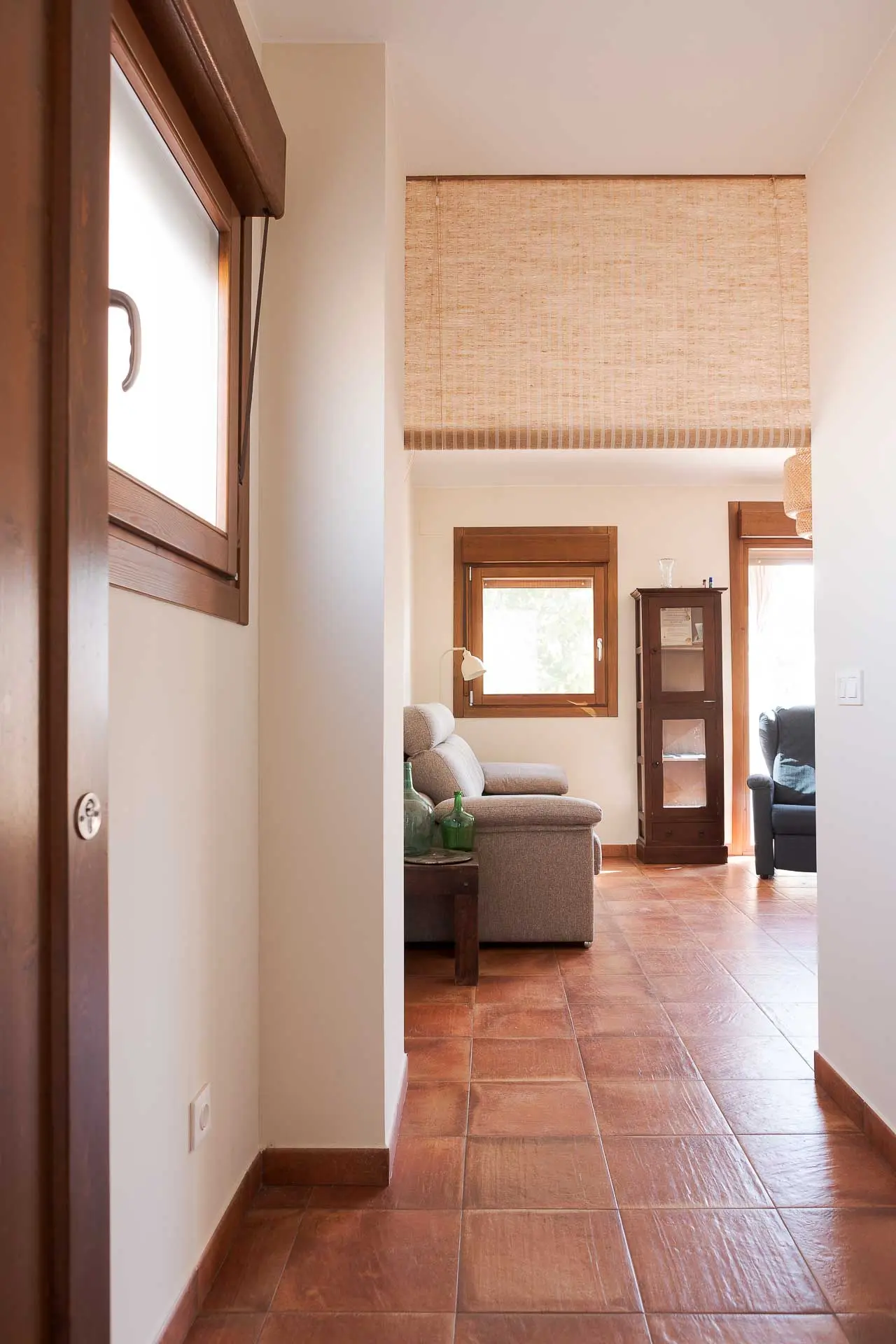 Las carpinterías de madera y cierta austeridad en el uso de materiales y mobiliario dan carácter a la vivienda.