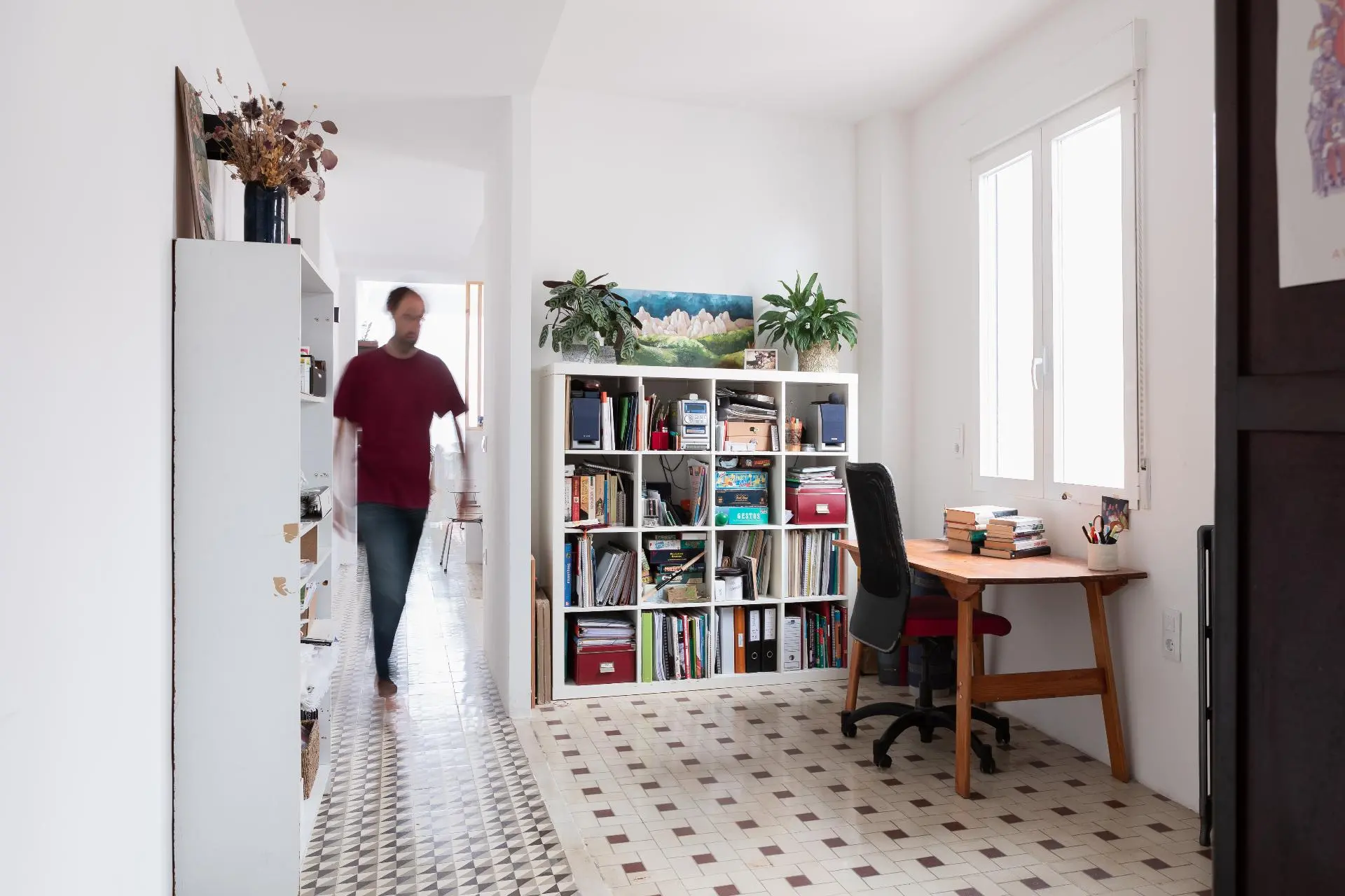 Un conjunto ecléctico, lleno de plantas, libros, guitarras y teclados, bicicletas, libros, discos, láminas y textiles, colores diversos. Una casa hecha a imagen y semejanza de sus propietarios, que ha recuperado la luz y ha sido habitada de forma respetuosa y saludable.