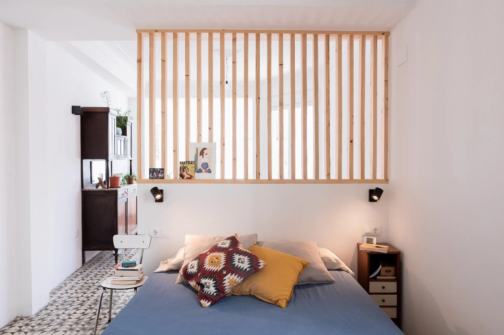 - Uso de madera en forma de celosía permeable (luz y ventilación) como separación de estancias.